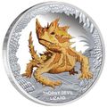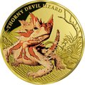 На реверсе золотой монеты в цвете показана находящаяся на ветке дерева плащеносная ящерица. В нижней части реверса полукругом выгравирована надпись – «FRILLED NECK LIZARD».