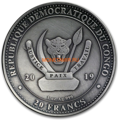 Конго 20 франков 2019 Высадка на Луну 50 лет Выпуклая Космос (Congo 20 Francs 2019 Moon Landing 50th Anniversary 1 oz Silver Domed Coin).Арт.67